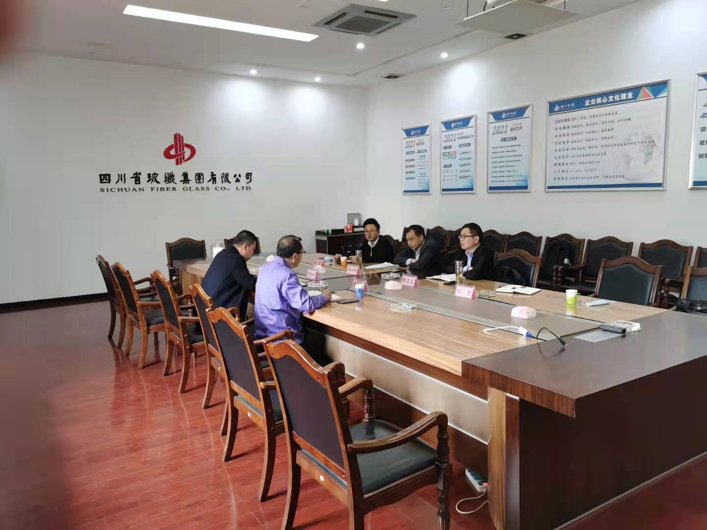 3月31日下午考察團(tuán)首先來到了四川省玻纖集團(tuán)有限公司,四川玻纖致力于玄武巖纖維研發(fā)近10 年,尤其是近5 年來先后成立了13個實驗室,先后攻克了多項玄武巖纖維生產(chǎn)過程中的技術(shù)瓶頸,研發(fā)出一整套池窯生產(chǎn)玄武巖連續(xù)纖維的生產(chǎn)工藝,具有完全自主知識產(chǎn)權(quán)的世界首條萬噸級玄武巖連續(xù)纖維池窯生產(chǎn)線,在四川玻纖天潤玄武巖科技有限公司,周利修一行參觀了玄武巖纖維生產(chǎn)線和產(chǎn)品展示現(xiàn)場,詳細(xì)了解了玄武巖纖維的生產(chǎn)現(xiàn)狀,四川玻纖集團(tuán)副總經(jīng)理鄒巖輝陪同參觀。