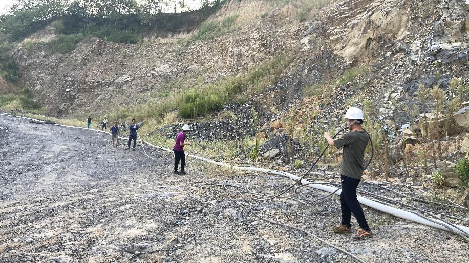 抗旱方案有了,可是要想把水從70米深的礦坑內(nèi)抽到地面,不但需要揚(yáng)程特別高的水泵,還需要高規(guī)格長距離的水管和電纜,還有很多配套零部件要采購。旱情就是命令,抗旱就是責(zé)任,興天礦業(yè)副總經(jīng)理趙崗牽頭落實(shí)抗旱物資采購,親自指揮設(shè)備調(diào)運(yùn)安裝,帶領(lǐng)公司抗旱突擊隊(duì)和社區(qū)干部深入礦坑,一起研究水泵需要多大功率安裝在什么地方、水管需要多粗從哪里下放、電纜需要多長從哪里接電等問題。方案制定好了,老百姓的水稻不能等,挖掘機(jī)第一時(shí)間進(jìn)場(chǎng)整理場(chǎng)地,興天礦業(yè)和社區(qū)準(zhǔn)備的水泵、水管電纜等也迅速到位,抗旱突擊隊(duì)與社區(qū)干部群眾一起與時(shí)間賽跑,從早到晚緊張施工,一心想著的就是早點(diǎn)把水抽上去,盡量把旱情影響降到最低。