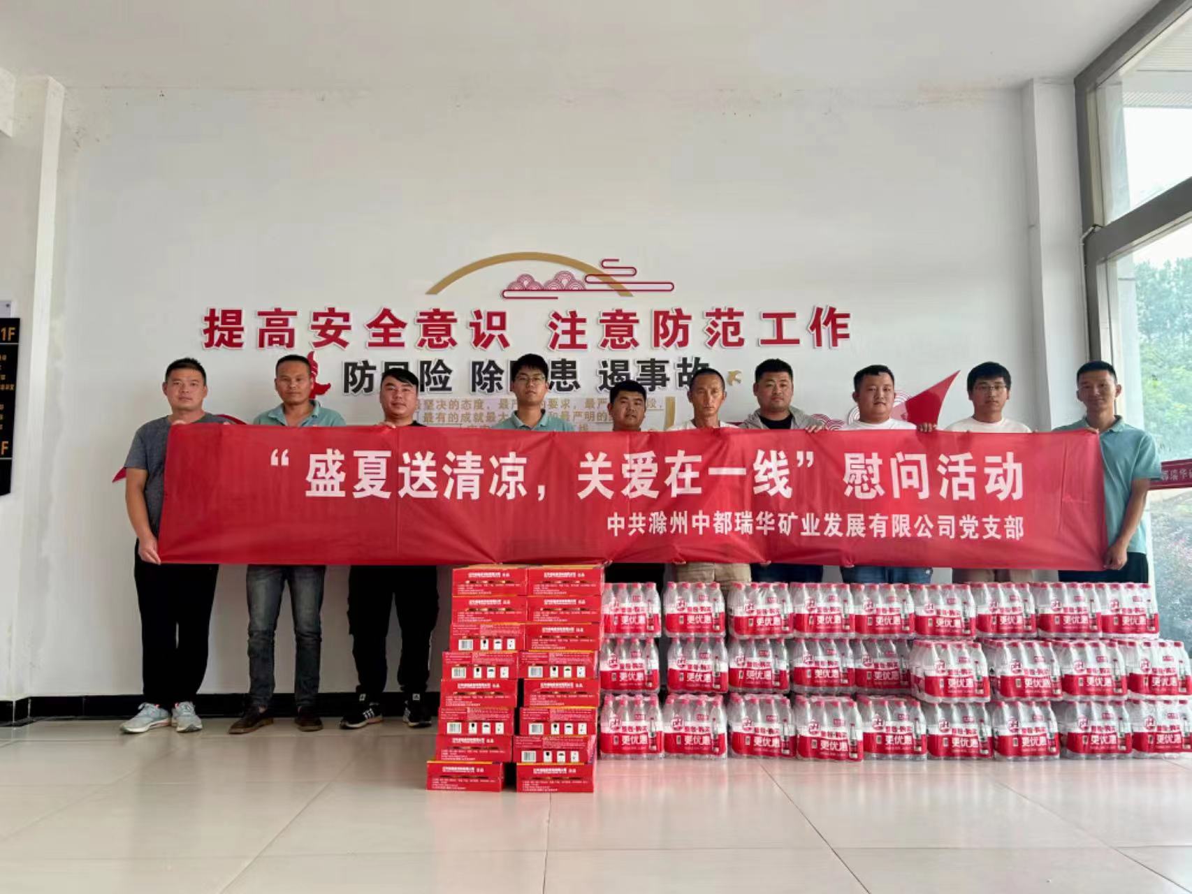 入伏以來,氣溫連續(xù)攀升。為關(guān)心一線員工身心健康,體現(xiàn)黨組織溫暖,7月28日,中都瑞華礦業(yè)黨支部組織為項(xiàng)目一線職工以及鄔崗、林山兩個(gè)運(yùn)輸車隊(duì)送上防暑降溫物品。對他們冒著酷暑仍堅(jiān)持在一線奮力工作的精神表示感謝,并叮囑他們要做好防暑工作,確保安全生產(chǎn)。